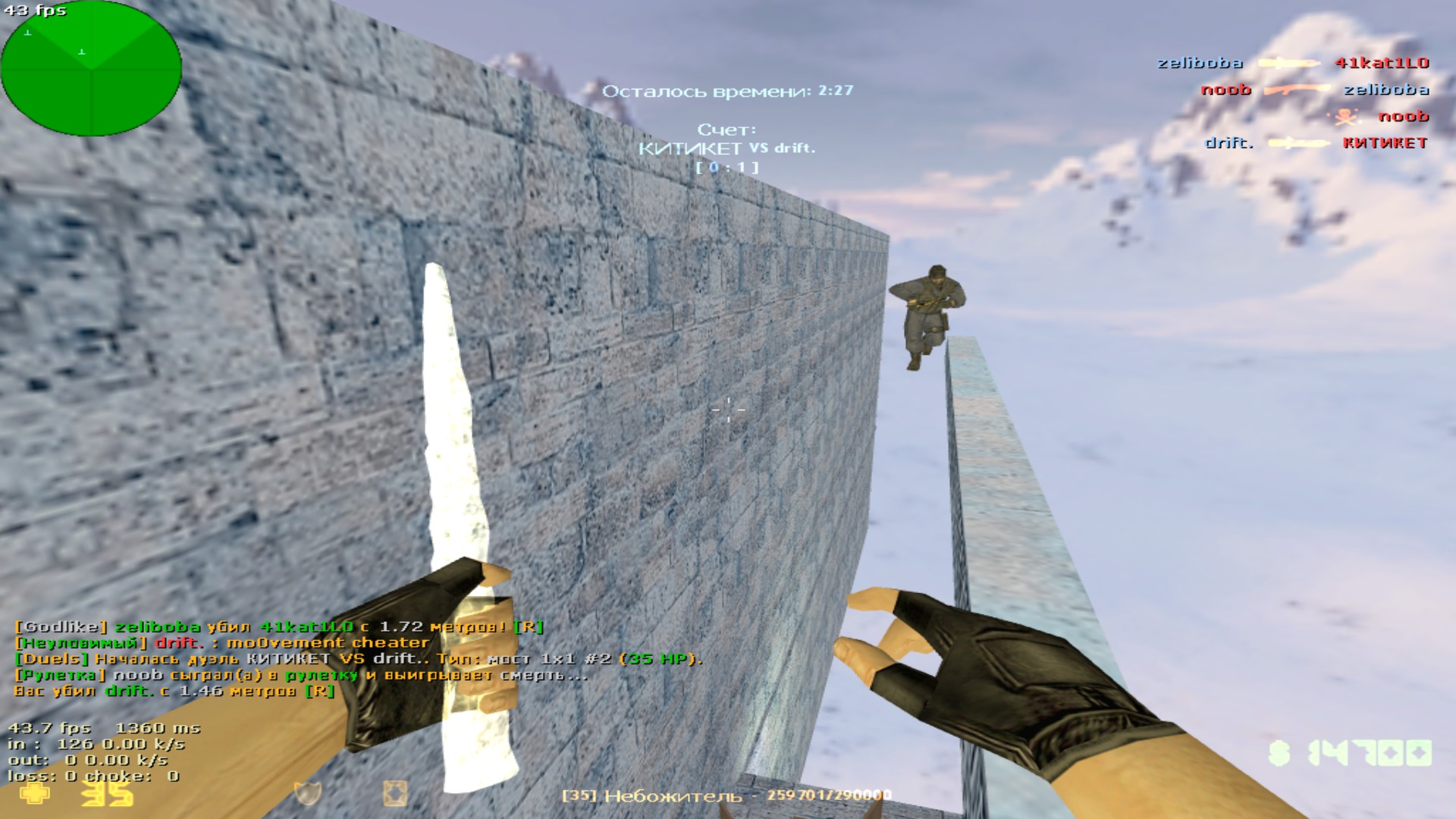 пора немного оживить форум, а то за месяц только одна тема появилась.. игрок под ником "drift" играет на сервере уже достаточно давно, но до сих пор не научился себя вести и продолжает обзывать всех, кто играет лучше его. поэтому я решил устроить небольшое публичное унижение в ПРОФИЛАКТИЧЕСКИХ целях! может теперь он перестанет позориться, хотя я на это не особо надеюсь... зелибоба молодец, в конце звуком годлайка под бит зарешал. другие мои видево тоже смотрите, я там много наснимал уже